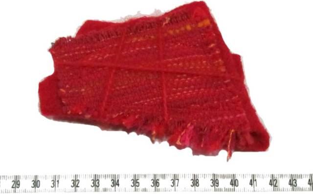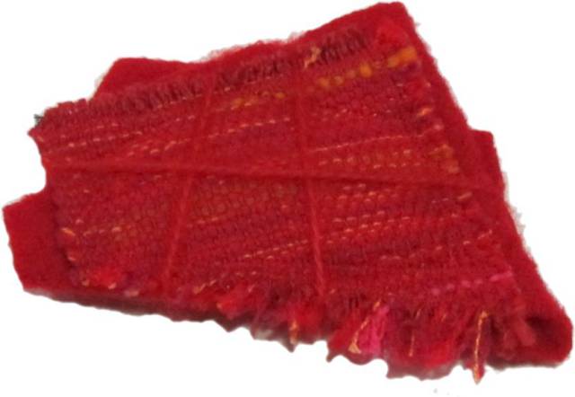 Sponka narejena iz pletiva in manjših kosov ročno tkane tkanine, ki paše tudi k cevastim pletenim in tkanim šalom. Na spodnjem delu ima varnostno sponko.