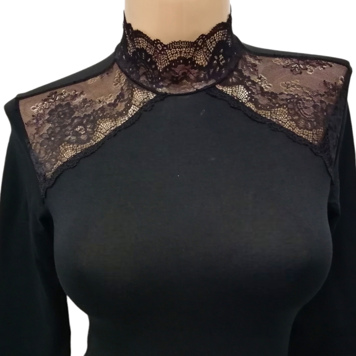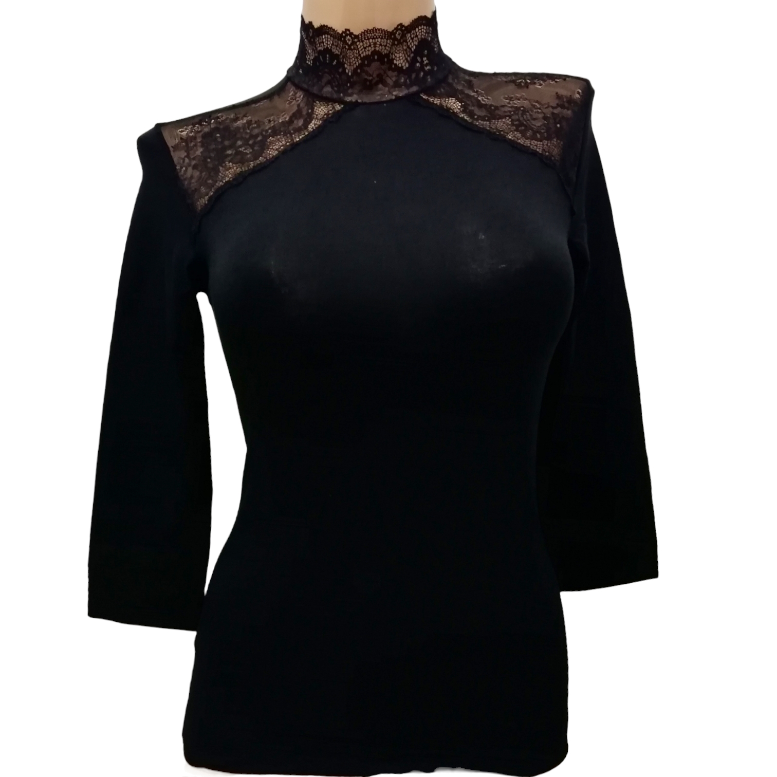 Ženska majica 3/4 rokav s čipko, polpuli iz bombaža in elastana.