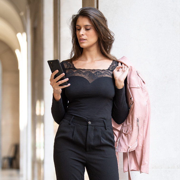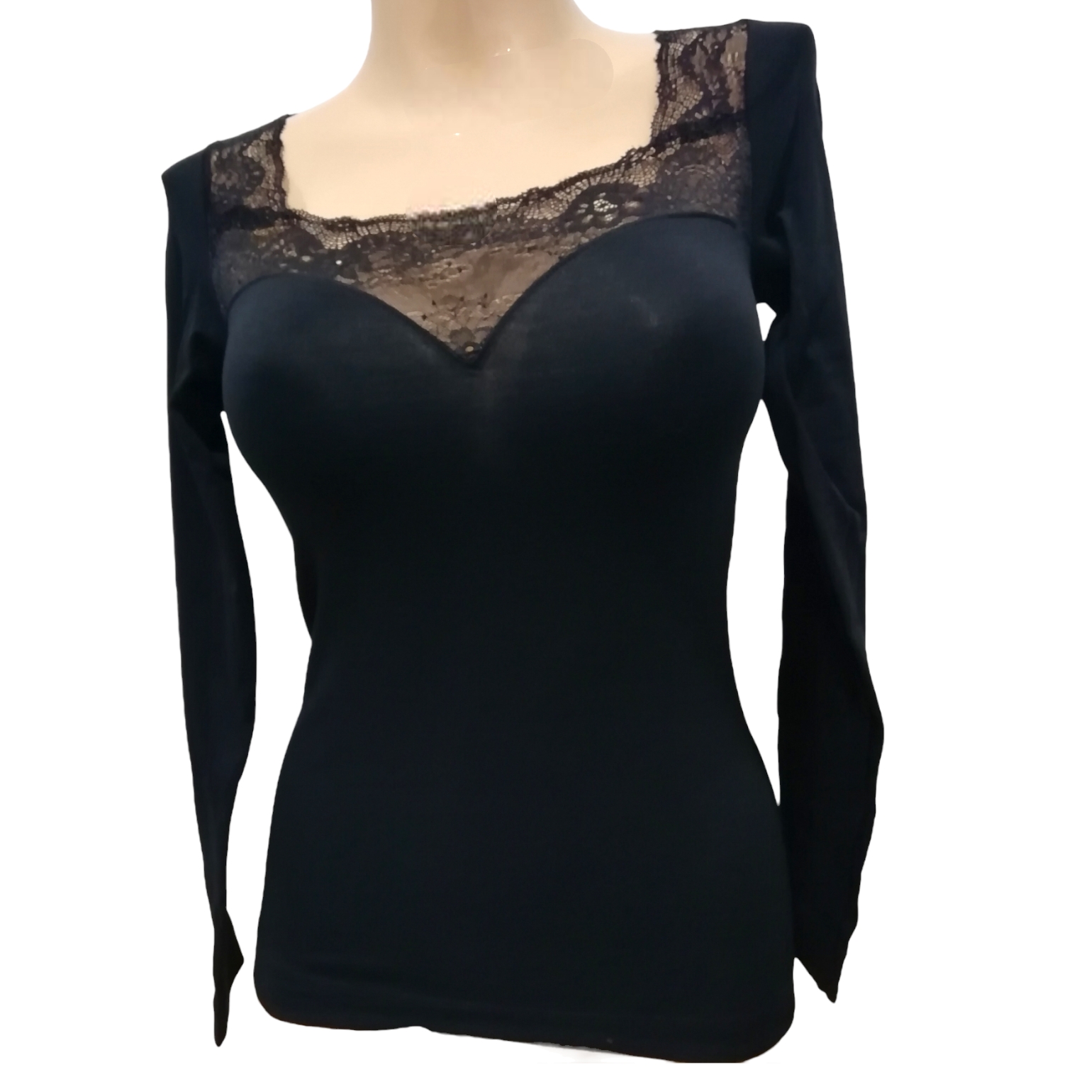 Ženska majica dolg rokav s čipko iz bombaža in elastana.