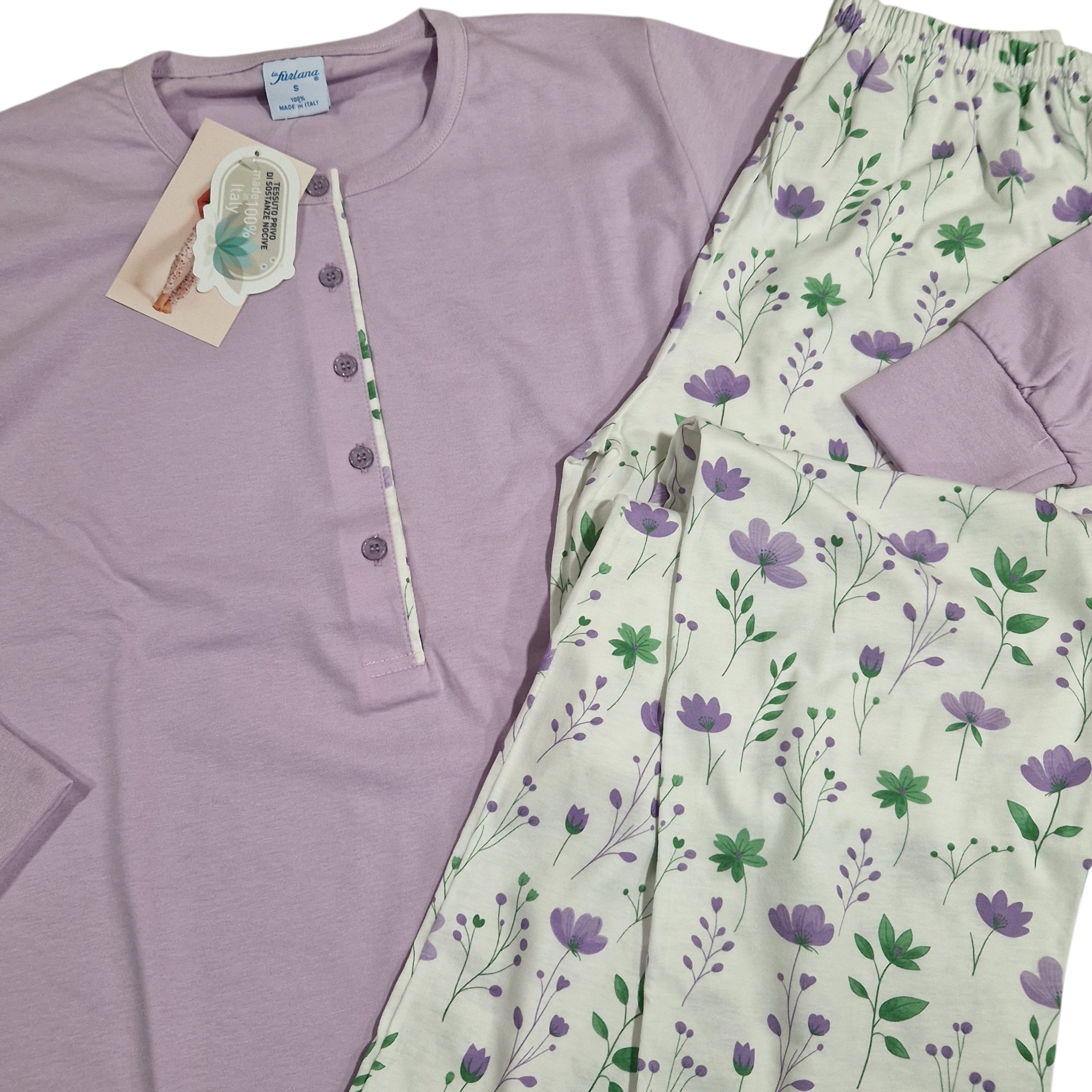 Ženska pižama dolg rokav tanka iz 100% bombaža
