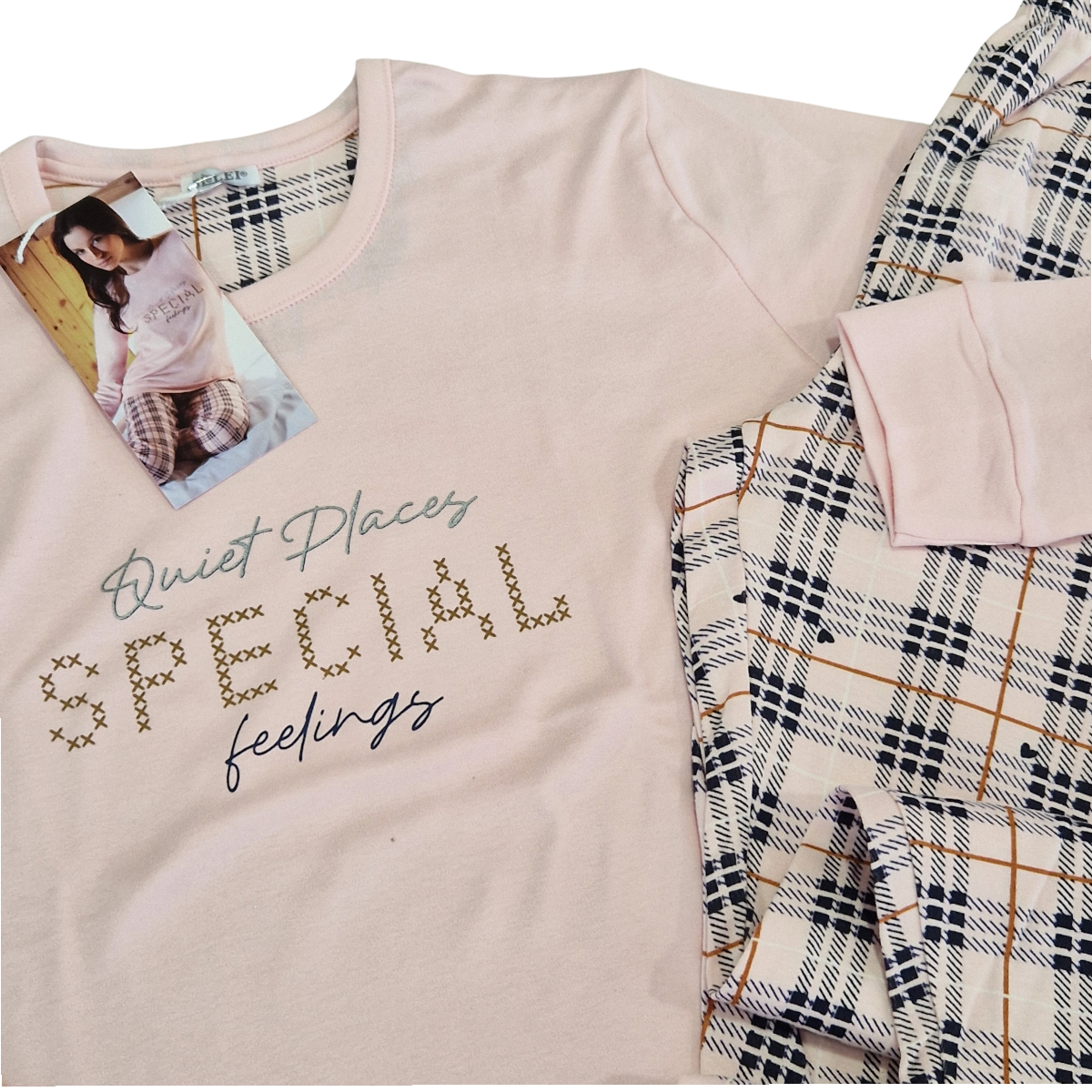 Udobna in mehka ženska pižama z dolgimi rokavi, narejena iz debelejšega interlock bombaža. Idealna za hladnejše noči, saj naravni material diha, hkrati pa prijetno greje.