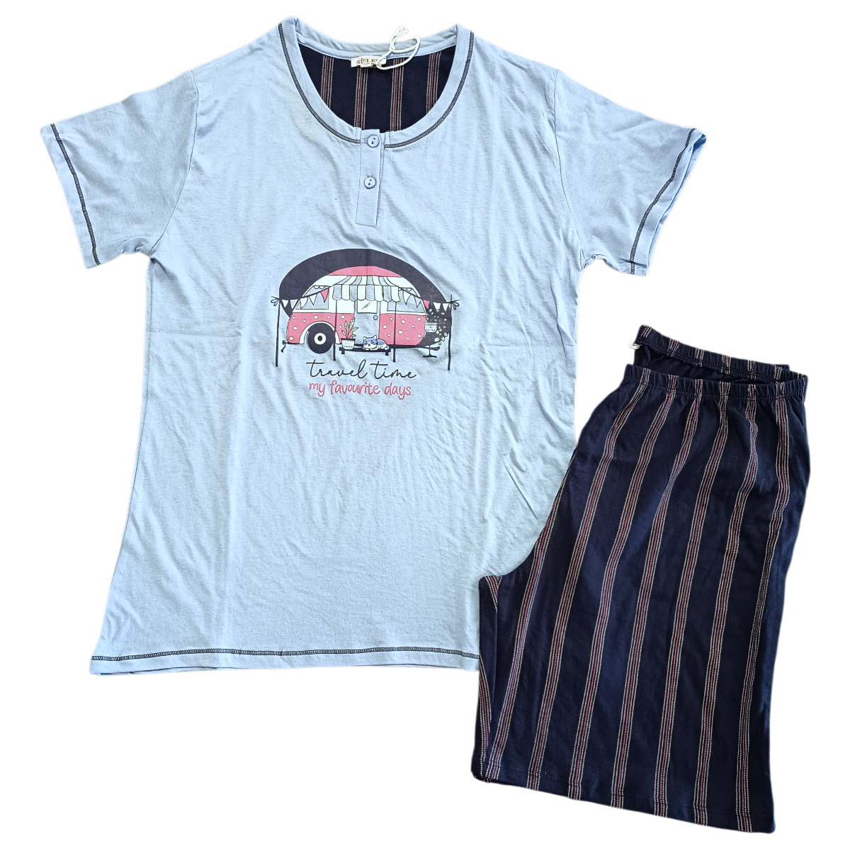 Ženska pižama kratek rokav in kratke hlače iz 100% tankega bombaža