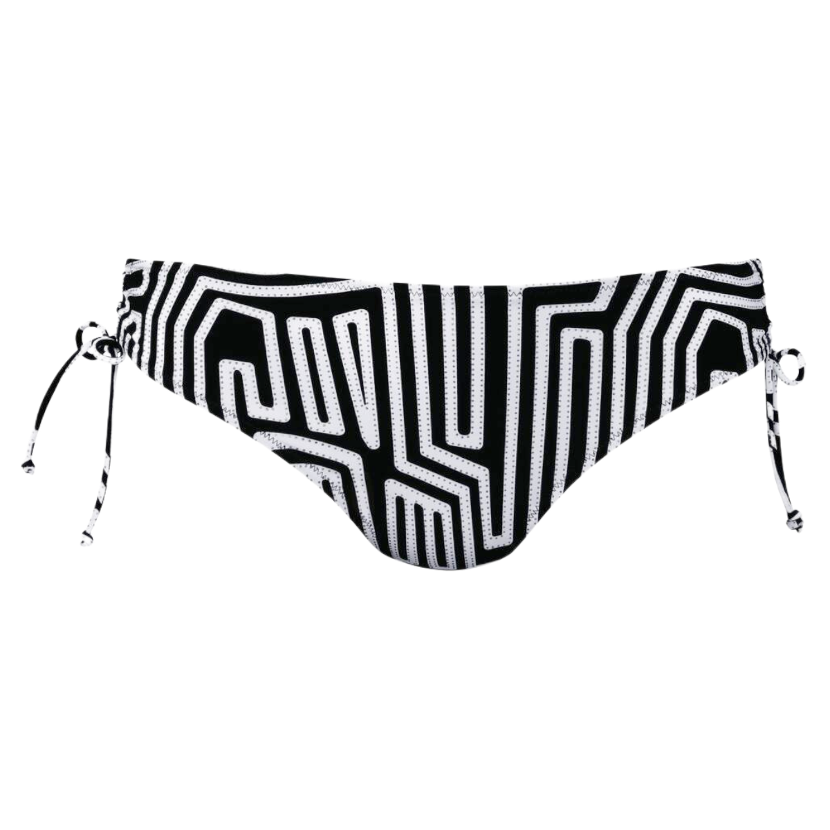Spodnji del kopalk Anita klasične oblike narejene iz kvalitetnega blaga. Širina kopalk pri straneh je 6 cm a imajo vrvico s katero se jih lahko še zoža. Kopalke niso podložene. Pikce znotraj vzorca so srebrne barve in so bleščeče. Na otip so zelo mehke in so hitrosušeče.