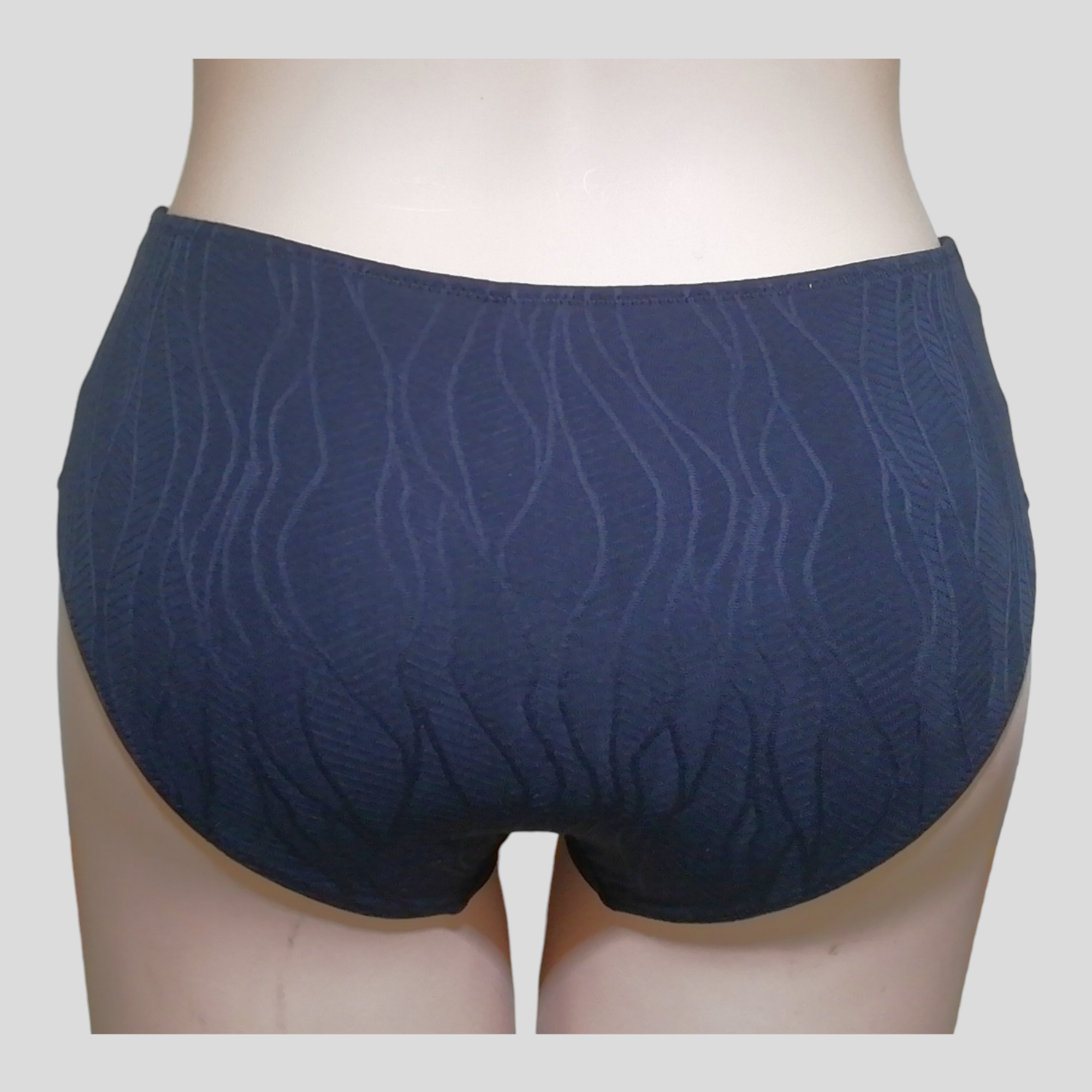 Ženske kopalke hlačke model slip. Na notranji strani so dodatno podložene s tanko podlogo. Pri straneh merijo 10 cm.