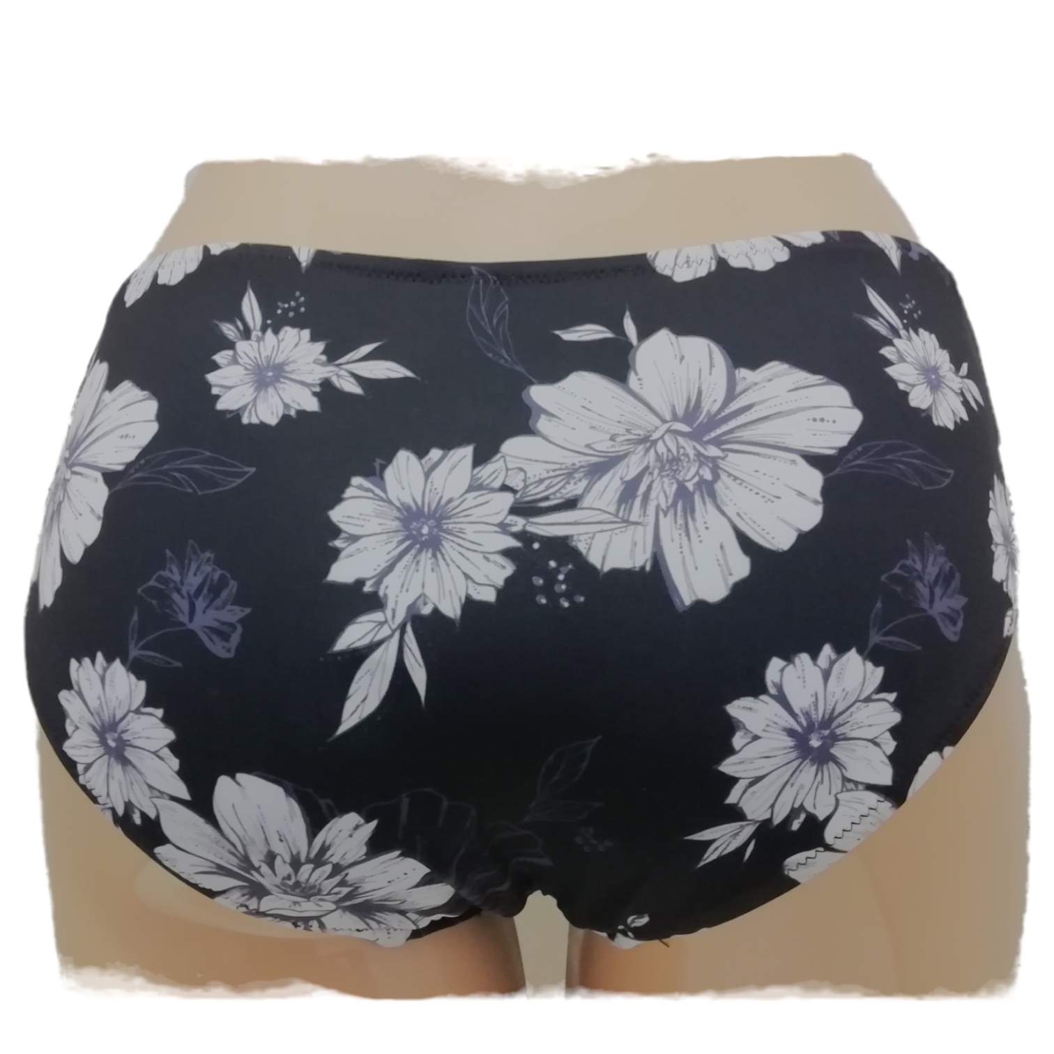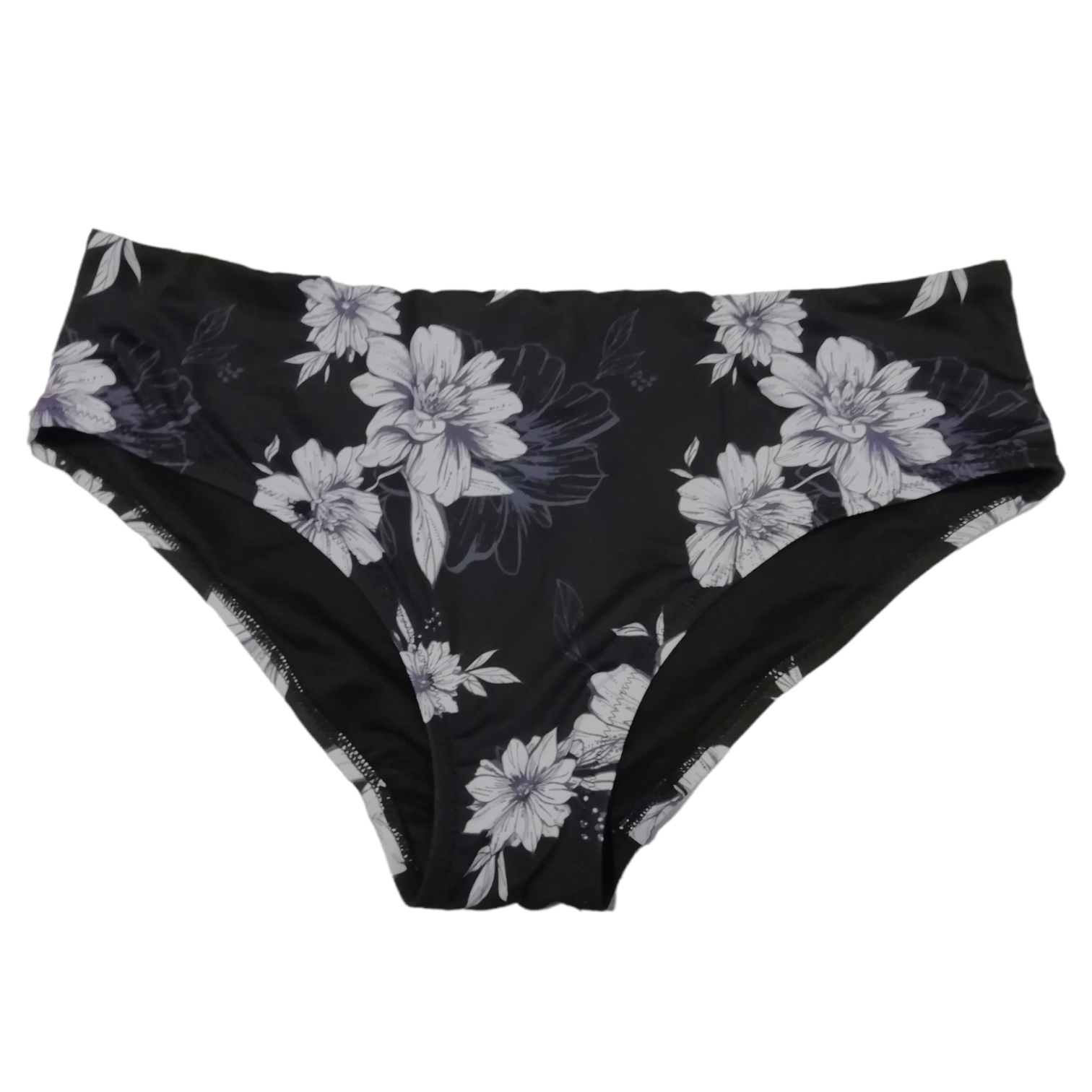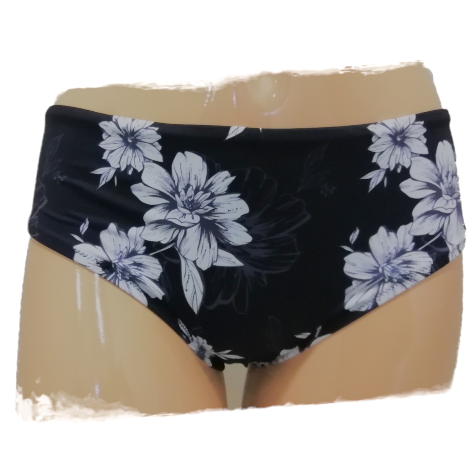 Ženske kopalke hlačke model slip. Na notranji strani so dodatno podložene s tanko podlogo. Pri straneh merijo 10 cm.