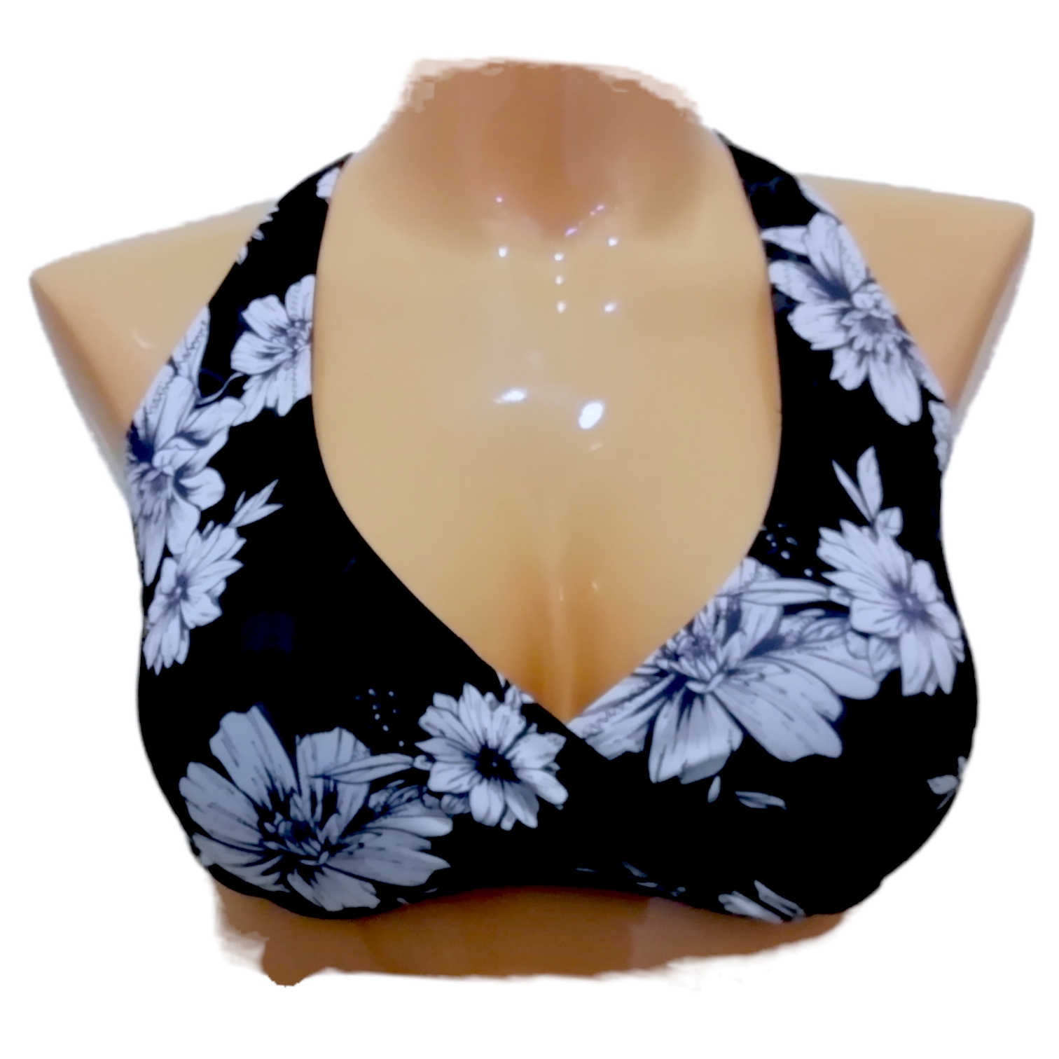 Modrček kopalk brez kosti z oblikovano košarico. Modrček na sprednjem delu je prekrižan in ob straneh ima dodano kost, ki daje stransko oporo. Modrček ima oblikovane košarice in ni dodatno podložen. Naramnice so nastavljive in se na zadnji strani odpnejo tako, da jih lahko zvežemo tudi okoli vratu ali pa na križ. Modrček se zapira s plastnično sponko.